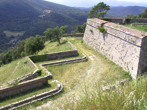 1659 wechselte Le Perthus im Rahmen des Pyrenäenvertrages zu Frankreich. 1674 während des Spanischen Krieges, wurde Bellegarde von den Spaniern eingenommen - und 1675 wieder abgegeben an Frankreich. 1679 besuchte der berühmte Festungsarchitekt Vauban den Standort und erteilte seinem Ingenieur C. R. de Monceaux den Auftrag für eine doppelte Befestigungsanlage. 1793 - wieder Krieg. Spanien versucht, das Roussillon zu erobern und nimmt am 25.06.1972 Bellegarde ein - und musste 1794 wieder an Frankreich abgegeben werden, nachdem General Dugommier es nach 4 Tagen Belagerung zurück eroberte. Dem General wurde in der Festung ein Denkmal gesetzt. |