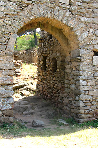 Zu Anfang des 14. Jahrhunderts finden sich die ersten Zeichen des Niedergangs. Kriege und Epidemien wüteten im Empordá und das religiöse und politische Feudalsystem brach zeitweilig zusammen. Im 17. Jahrhundert begann man mit Weinbau und legte die Trockenmauerterrassen dafür an. Die Wirtschaftslage erholte sich. 1798 gaben die Mönche die Abtei wegen wiederholter räuberischer Angriffe auf und zogen nach Villa-Sacra um, 1818 nach Figueres. 1836 - im Zuge der Kirchenenteignung kam es zur endgültigen Auflösung der Klostergemeinschaft von Sant Pere de Rhodes. Bis 1930 war die Klosteranlage Plünderungen und dem Verfall preisgegeben. Erst als die Anlage 1930 zum kulturhistorischen Nationaldenkmal erklärt wurde, begann man mit der Restaurierung und ab 1989 mit der archäologischen Ausgrabung und Gesamtsanierung. Sant Pere ist eines der meistbesuchten Baudenkmäler Kataloniens. ![]() ![]() Sant Salvador ![]() von Eingangsbereich oben hinter